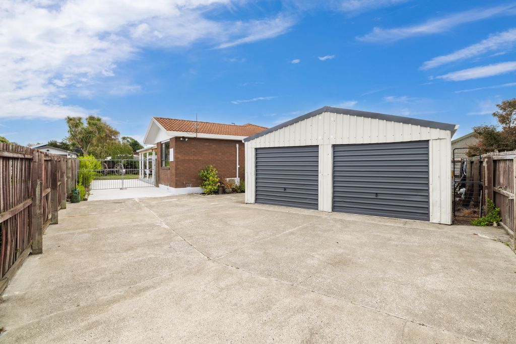 A detached double garage and an additional gated concrete pad offer ample off-street parking for a boat or caravan.
