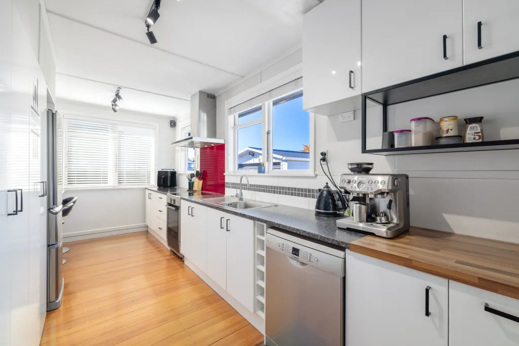 Inside, the three-bedroom, one-bathroom layout retains its original footprint, featuring a separate lounge at the front and a modernised galley kitchen running along the rear.
